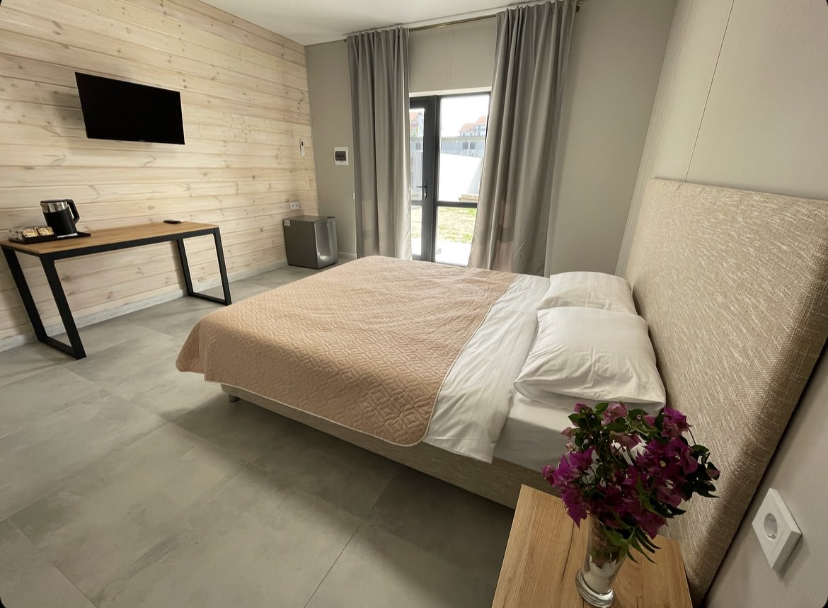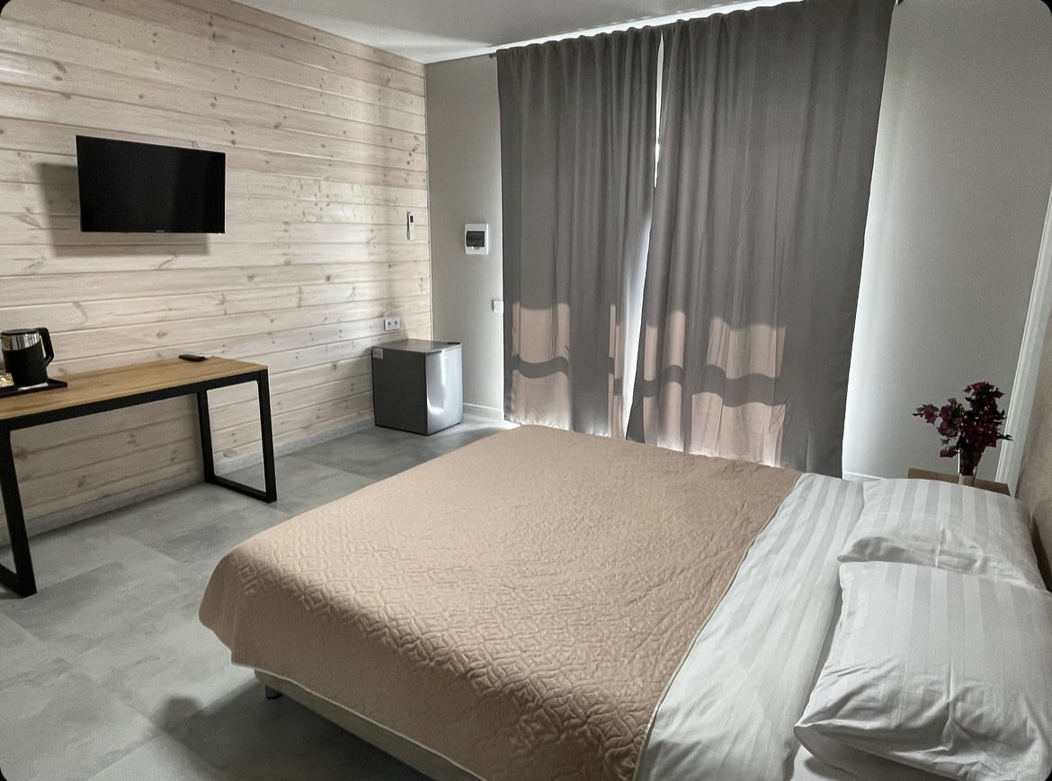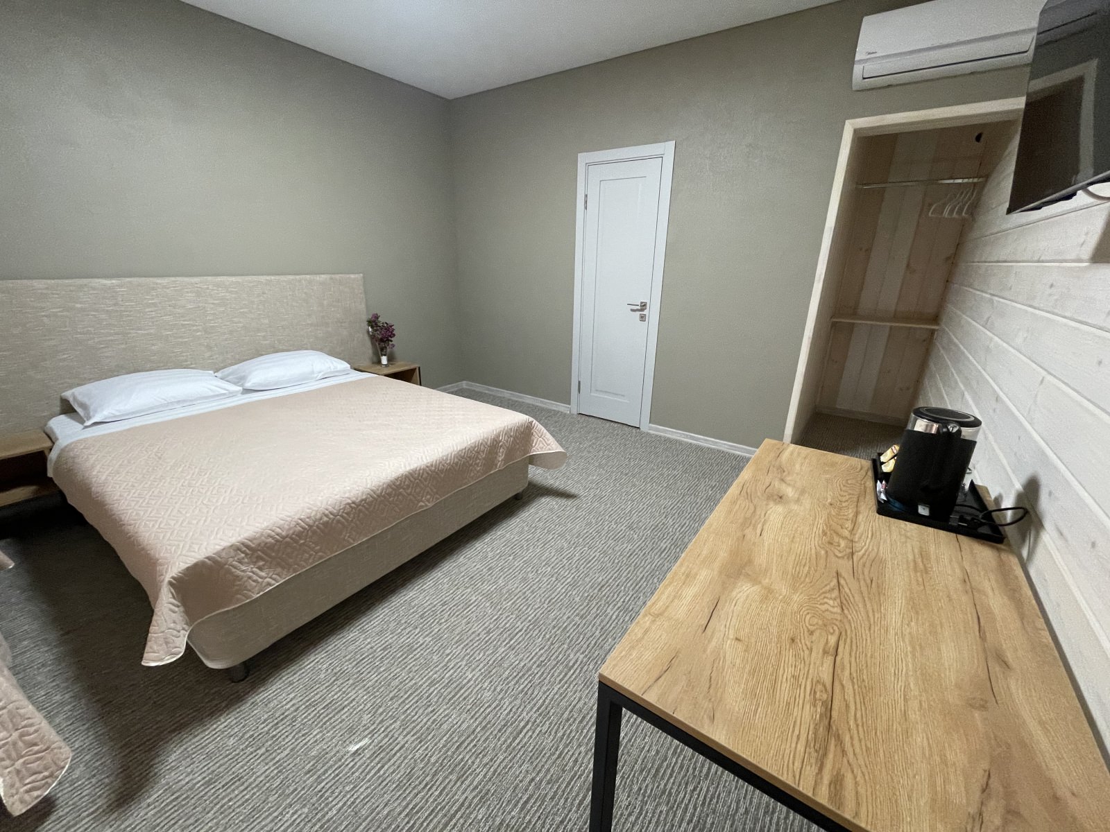 Площадь номера - 22 кв.м. 2 осн. места. 1 доп. место. Мебель: вешалка, зеркало, кровати односпальные /одна двуспальная кровать, прикроватные тумбочки, стол, шкаф. Оборудование: кондиционер, набор посуды, телевизор, холодильник, электрочайник. Санузел: с душем, туалетные принадлежности, фен. Сервис: Wi-Fi бесплатно, смена полотенец, смена постельного белья, уборка номера.